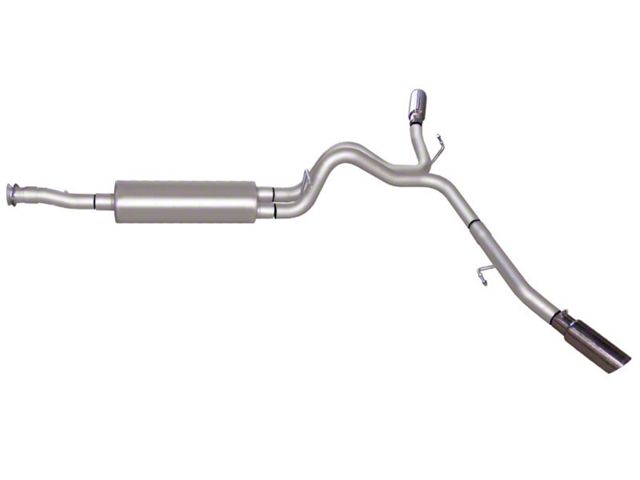 For the extremist who wants to take their truck to the next level, this dual bolt-on Cat back system is for you. This system exists behind the rear tires at an aggressive angle with a powerful exhaust tone. You will gain bold street looks with powerful dyno tuned and tested street performance gains. You can expect to experience gains on average of 15-20 horsepower. Gibson muffler provides a mean performance sound and complemented with polished Stainless Tip. Easy bolt-on installation. No welding required. Backed by a Lifetime Limited Warranty. If you want Extreme, this system is it.