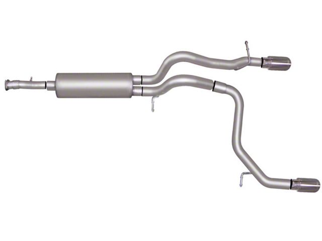 For the enthusiast who wants an awesome look and aggressive throaty sound this Dual Split Cat back exhaust is for you. Gibson Exhaust Systems decrease backpressure and produce more torque and increased horsepower. Typical gains average of 15-20 horsepower. Stainless dual Tip exit straight out the back. Works with most bumpers, roll pans and trailer hitches. Exhaust sound is louder under towing conditions. Hassle Free bolt- on installation. No welding required. Backed by a Lifetime Limited Warranty.