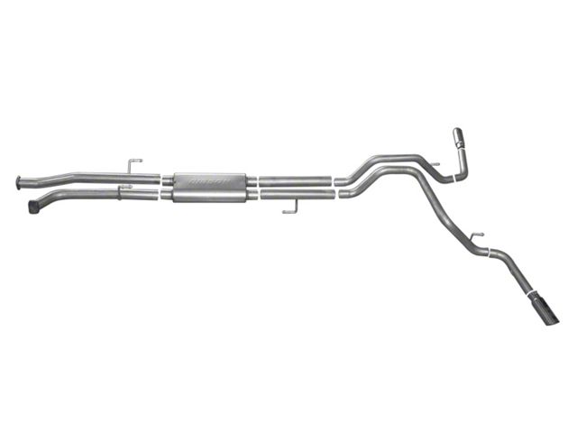 For the extremist who wants to take their truck to the next level, this dual bolt-on Cat back system is for you. This system exists behind the rear tires at an aggressive angle with a powerful exhaust tone. You will gain bold street looks with powerful dyno tuned and tested street performance gains. You can expect to experience gains on average of 15-20 horsepower. Gibson muffler provides a mean performance sound and complemented with polished Stainless Tip. Easy bolt-on installation. No welding required. Backed by a Lifetime Limited Warranty. If you want Extreme, this system is it.