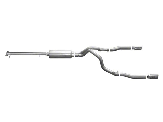 For the enthusiast who wants an awesome look and aggressive throaty sound this Dual Split Cat back exhaust is for you. Gibson Exhaust Systems decrease backpressure and produce more torque and increased horsepower. Typical gains average of 15-20 horsepower. Stainless dual Tip exit straight out the back. Works with most bumpers, roll pans and trailer hitches. Exhaust sound is louder under towing conditions. Hassle Free bolt- on installation. No welding required. Backed by a Lifetime Limited Warranty.