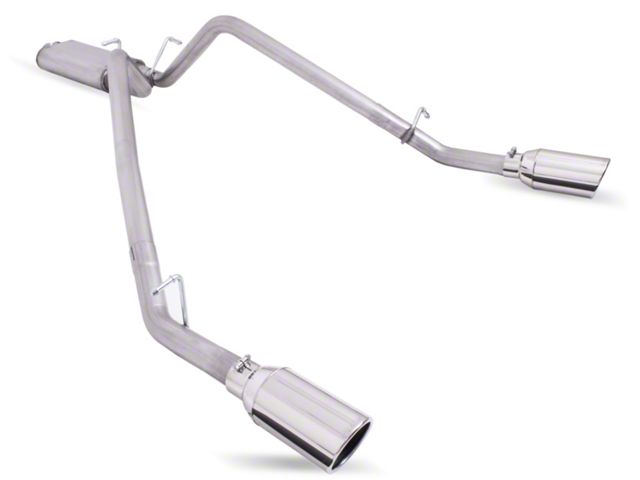 For the enthusiast who wants an awesome look and aggressive throaty sound this Dual Split Cat back exhaust is for you. A bold,newly engineered design for maximum fitment, this Exhaust System decreases backpressure and produces more torque and increased horsepower pushing the boundaries of what you think a truck exhaust can be. Typical gains average of 15-20 horsepower. Stainless Dual Tips exit straight out the back. Works with the factory bumpers. Exhaust sound is louder under towing conditions. Hassle Free bolt- on installation. No welding required. Backed by a Lifetime Limited Warranty.