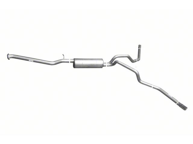 For the extremist who wants to take their truck to the next level, this dual bolt-on Cat back system is for you. This system exists behind the rear tires at an aggressive angle with a powerful exhaust tone. You will gain bold street looks with powerful dyno tuned and tested street performance gains. You can expect to experience gains on average of 15-20 horsepower. Gibson muffler provides a mean performance sound and complemented with polished Stainless Tip. Easy bolt-on installation. No welding required. Backed by a Lifetime Limited Warranty. If you want Extreme, this system is it.
