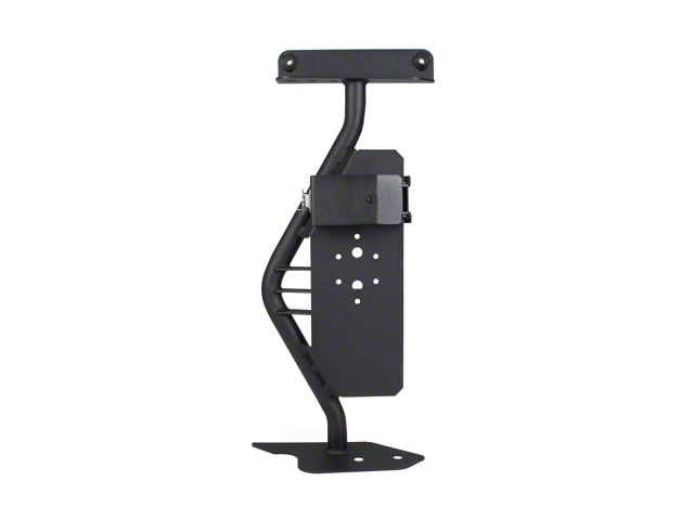 Front driver side exterior jack mount for Jeep Wrangler JL, JLU, and GLADIATOR JT. Easily mounts high clearance off-road and farm jacks securely to the side of the vehicle. The unique design keeps jack from rattling while driving. Easy bolt-on, no-drill installation. The Jack Mount comes with a Limited Lifetime warranty on materials and construction and a 5 year warranty on the the textured black powder coat finish.