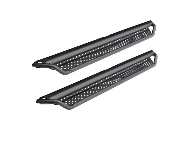 The Go Rhino Dominator D1 is a cab length slider with drop down step designed for both the daily driver and the recreational off-roader. The D1 is constructed of powder coated steel tubing that provides slider protection from trail obstacles and road debris along the rocker panel of vehicle. The wide step area and mesh stepping plate allows for easy access in and out of a lifted vehicle and the raised hex pattern offers a no-slip grip. Installation is easy and the utilization of the OEM step mount locations means no drilling or cutting required. Hardware and brackets are included. The D1 Side Steps come with a Limited Lifetime warranty on materials and construction and a 5 year warranty on the Textured Black Finish.