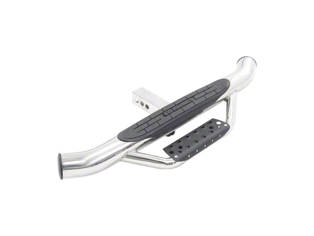 Provides easy rear step access to the bed or back of a truck, Jeep or SUV. Includes anti-rattle device and a convenient black storage bag. Dual step for hard-to-reach storage areas or racks are now easily accessible. Manufactured of the highest quality steel for unmatched strength and durability. Lifetime warranty on materials, construction and Finish.