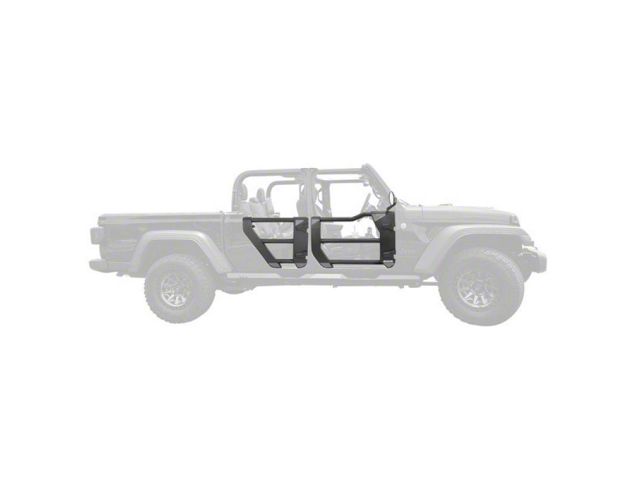 Go Rhino's Trailline Tube Doors remove the final barrier to the total, immersive outdoor experience while offering a stylish alternative to factory doors. Manufactured from 2" steel tubes fully welded onto 16-gage steel plates, these doors are designed for both utility and ease of installation. The easy-grip ball latch handle double-clicks for both easy-close and hard-close. Adjustable rubber plungers balance the door to the frame to eliminate vibration and rattling. The cast steel hinges utilize the factory hinge pin and the factory nuts for easy installation.