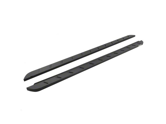 The RB10 Slim Line Running Boards offer the same heavy duty toughness as the original RB Series, but with a slimmer design that fits tighter along the cab for increased ground clearance when off-roading. Constructed from 16-gauge zinc-coated galvanized steel, the Raptor-inspired boards were built to protect your panels from flying debris while providing a full-length step platform. The classic louvered design is four inches across at its widest point (compared with six inches of the original RB10) and are offered in cab-length sizes that fit most popular trucks, Jeeps and SUVs. RB10 Slim Running Boards come with a Limited Lifetime warranty on materials and construction and a 5 year warranty on the Textured Black Finish.