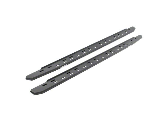 Meet the third edition of the legendary Go Rhino RB Series of running boards: the RB30 Slim Line Running Boards. The RB30 is the next generation of Raptor-inspired design that will make your truck, Jeep, Bronco or SUV stand out from the crowd. With its aggressive, stylish appearance, this cab-length, bolt-on side step provides maximum traction and features an open flow-through design that prevents mud, ice, and snow from accumulating. The RB30 Slim Line Running Board offers the same heavy duty toughness as the original-width RB30, but with a slimmer design that fits tighter along the cab for increased ground clearance when off-roading. The RB30 Slim Line is 5" wide for most its length before it tapers (compared to 7" wide for the original-width). The corrosion-resistant 16-gauge steel step mounts tightly to factory mounting points along the lower rocker panel and it's strong enough to support 300 lbs. per stepping surface for 600 lbs. per board. All RB Series Running Boards are available in Textured Black Powder Coat or Protective Bedliner finish, made in North America and offer a limited lifetime warranty against manufacturer and material defects, with a 5-year warranty on the finish.