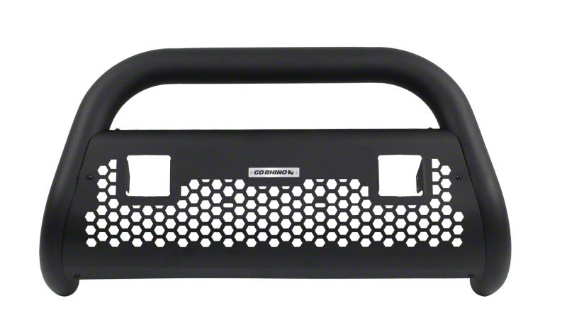 Go Rhino's RC2 LR Bull Bars offer updated styling and the ability to combine today's popular LED lights with front-end protection. The 3" diameter tubular steel frame features a galvanized steel skid plate with a stylish hexagonal cut out pattern. The RC2 LR comes in a variety of styles, light options and kit combinations. (Mounting brackets not included). RC2 Bull Bars come with a Limited Lifetime warranty on materials and construction and a 5 year warranty on the the textured black finish.