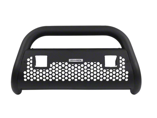 Go Rhino's RC2 LR Bull Bars offer updated styling and the ability to combine today's popular LED lights with front-end protection. The 3" diameter tubular steel frame features a galvanized steel skid plate with a stylish hexagonal cut out pattern. The RC2 LR comes in a variety of styles, light options and kit combinations. (Mounting brackets not included). RC2 Bull Bars come with a Limited Lifetime warranty on materials and construction and a 5 year warranty on the the textured black finish.