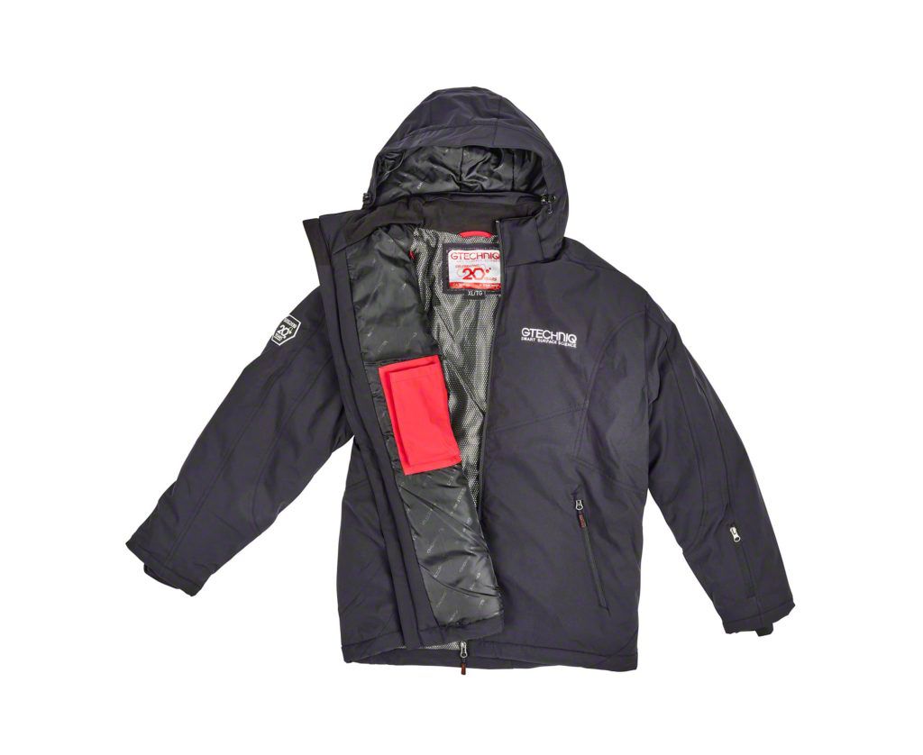 Gtechniq logo embroidered on the left chest in white, white 20 year logo on the top of the right sleeve.