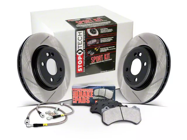 Significant brake performance improvements using the factory calipers and pre-matched; direct-replacement (OEM) sized components. This StopTech Sport Axle Pack includes cross-drilled StopTech Sport Rotors; StopTech Sport Pads and StopTech Stainless Steel Lines.