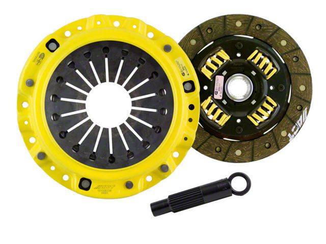 HS1-HDSS kit features ACTs most popular Heavy Duty pressure plate and most popular street disc. ACT Heavy Duty pressure plates use exclusive diaphragm design to increase clamp load, reduce deflection and maximize clutch life. All diaphragms endure a four-stage, heat-treating process for unparalleled performance. ACT pressure plates have precision cover stampings to provide rigidity and consistency. ACTs Performance Street discs feature premium organic materials with high copper content for better heat transfer and steel-backed lining for greater burst strength and durability. These discs have reduced marcel for faster shift action to complement ACT pressure plates, with increased strength and reliability.