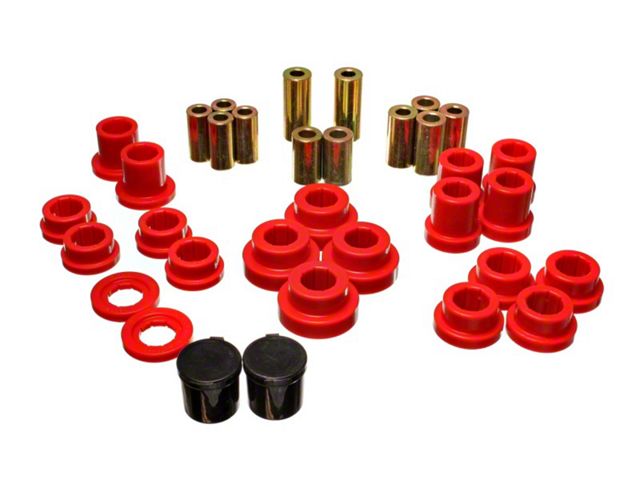 For both front and rear of suspensions on cars, trucks and SUVs. Made of Energy's Hyper-Flex performance polyurethane for optimum performance and durability. Maintains proper alignment under extreme conditions on the street, track or off-road. Improves vehicle handling, cornering and overall control. Full floating for smoother, efficient operation. Outlasts and outperforms rubber.