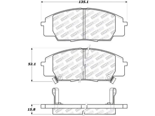 StopTech Street Select Brake Pads provide superior stopping power and reliability for passenger cars and light trucks. StopTech engineers have developed two application specific friction compounds; semi-metallic and ceramic that combine improved stopping performance while reducing noise and dust. StopTech Street Select Brake Pads are installation ready with High Performance shims attached to eliminate noise and vibration. OE style gas slots and chamfers optimize braking performance especially in repeat stop situations. Application specific hardware is included with each pad set ensuring full restoration of system performance and extended service life.