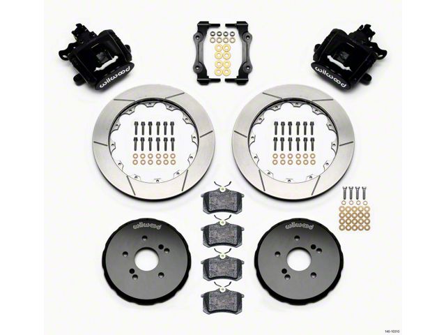 Combination hydro-mechanical Parking Brake calipers use hydraulic pressure from the master cylinder for stopping power, and an internal mechanical lock within the caliper for a parking brake. CPB kits are built primarily for front wheel drive vehicles, and select rear wheel drive axles that are not well suited for internal shoe style parking brakes. The calipers are coupled with oversized two-piece rotor assemblies with aluminum hats and high friction BP-10 compound pads. CPB kits provide the correct balanced brake performance and matching style to compliment front big brake upgrade kits.
