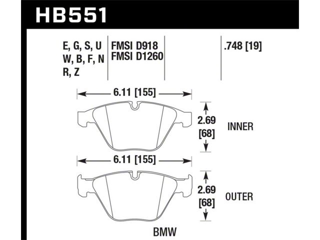 High Performance Street disc brake pads are legendary for increasing stopping power on street-legal vehicles. Increasing the performance of your vehicles braking system is easy when you choose Hawk Performances HPS braking compound. The High Performance Street compound offers a higher coefficient of friction over stock brake pads and can provide you 20 to 40 percent more stopping power and higher resistance to brake fade than most standard replacement pads. Less fade means you will have better pedal feel and more consistent performance in a durable brake pad that generates less brake dust.