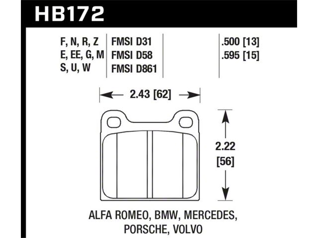 High Performance Street disc brake pads are legendary for increasing stopping power on street-legal vehicles. Increasing the performance of your vehicle's braking system is easy when you choose Hawk Performance's HPS braking compound. The High Performance Street compound offers a higher coefficient of friction over stock brake pads and can provide you 20 to 40 percent more stopping power and higher resistance to brake fade than most standard replacement pads. Less fade means you will have better pedal feel and more consistent performance in a durable brake pad that generates less brake dust.