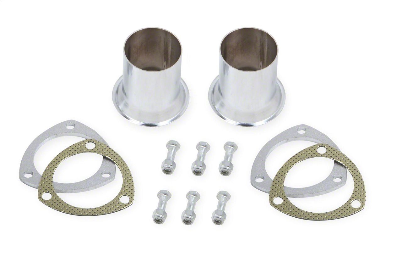 Mr. Gasket Header Reducers look great and make it easy to adapt 3" Headers to your 2-1/2" exhaust system. The reducers and retaining rings are made from heavy gauge steel and have chrome plating for great looks. The heavy duty gaskets are steel clad composite. The Grade-5 hardware includes lock nuts. Retail clamshell packaging-sold in pairs.