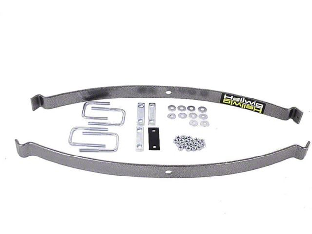 Hellwig's medium-duty EZ-990 Helper Springs pack a lot of capability in every box. Packaged complete with the same heavy duty powder coated and plated components, hardware and installation instructions as our heavy duty helper spring products, these kits are designed for the vehicles that need lighter assistance in carrying a load. Simple bolt on design using common hand tools provide the installer ease of installation and the vehicle owner hassle free use. Ideally suited for light towing and loads, these units are fully adjustable using the heavy duty U-bolts included in the kit using simple hand tools. If your tow and haul needs change, simply adjust the heavy duty U-bolts to suit the new load requirements. Once installed and adjusted you are free to haul or tow with greater control and stability. Manufactured with heat treated ASTM 5160 alloy spring steel in our California based facility, these units are rated up to 2,000 lb. level load carrying capacity. They are a great cost effective spring solution and can be adjusted independently for uneven side to side loads.