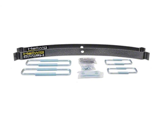 Hellwig's medium-duty EZ-990 Helper Springs pack a lot of capability in every box. Packaged complete with the same heavy duty powder coated and plated components, hardware and installation instructions as our heavy duty helper spring products, these kits are designed for the vehicles that need lighter assistance in carrying a load. Simple bolt on design using common hand tools provide the installer ease of installation and the vehicle owner hassle free use. Ideally suited for light towing and loads, these units are fully adjustable using the heavy duty U-bolts included in the kit using simple hand tools. If your tow and haul needs change, simply adjust the heavy duty U-bolts to suit the new load requirements. Once installed and adjusted you are free to haul or tow with greater control and stability. Manufactured with heat treated ASTM 5160 alloy spring steel in our California based facility, these units are rated up to 2,000 lb. level load carrying capacity. They are a great cost effective spring solution and can be adjusted independently for uneven side to side loads.