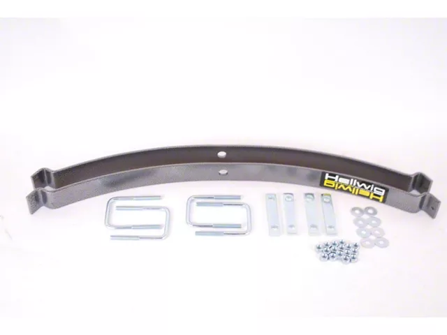 Hellwig's medium-duty EZ-990 Helper Springs pack a lot of capability in every box. Packaged complete with the same heavy duty powder coated and plated components, hardware and installation instructions as our heavy duty helper spring products, these kits are designed for the vehicles that need lighter assistance in carrying a load. Simple bolt on design using common hand tools provide the installer ease of installation and the vehicle owner hassle free use. Ideally suited for light towing and loads, these units are fully adjustable using the heavy duty U-bolts included in the kit using simple hand tools. If your tow and haul needs change, simply adjust the heavy duty U-bolts to suit the new load requirements. Once installed and adjusted you are free to haul or tow with greater control and stability. Manufactured with heat treated ASTM 5160 alloy spring steel in our California based facility, these units are rated up to 2,000 lb. level load carrying capacity. They are a great cost effective spring solution and can be adjusted independently for uneven side to side loads.