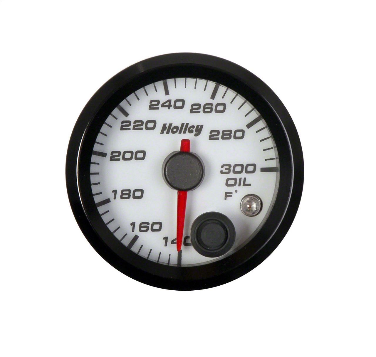 Holley's analog-style standalone gauges gives you a simple yet modern way to monitor all types of engine and drivetrain functions. Their slim style mounting requires very little dash space depth for mounting. All of our gauges feature dimmable LED backlighting to ensure you can always see the gauge no matter the environment. Choose from a large variety of applications for all types of temperature and pressure monitoring along with programmable fuel level and voltage options. Each are tested to insure a top quality accurate gauge. The Holley gauges are designed for a 2-1/16" opening and available with black face with white lettering or white face with black lettering.