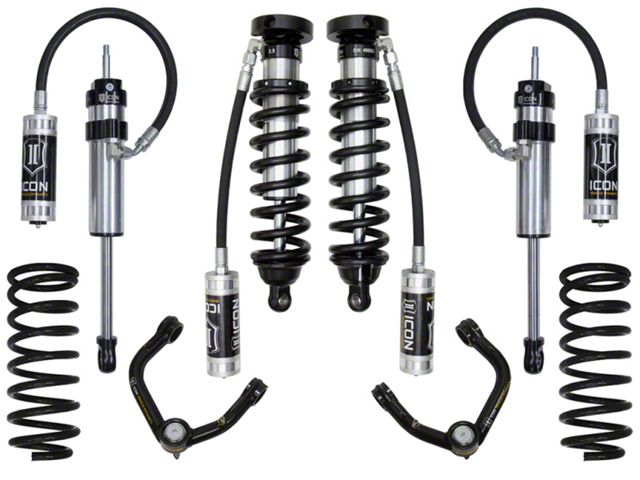 This system features upper control arms with ICON's patented Delta Joint. The Delta Joint is a heavy-duty high angle ball joint that combines the durability of a ball joint with the performance characteristics of a traditional uniball. While the industry standard uniball does a great job of allowing the control arms of a vehicle to articulate with little bind, they do have an inherent weakness that leaves more to be desired when used in a daily driven application - exposure to the elements. The Delta Joint features a zinc plated housing providing the first layer of corrosion resistance, while a tough grease seal keeps potentially harmful elements out of the inner workings of the joint. Metal on metal construction and a greaseable design increase the longevity of the Delta Joint while at the same time allowing for noise-free operation. What makes the Delta Joint unique is that it brings the best of both worlds to ICON upper control arms with features that make it more robust than a uniball, and at the same time capable of greater angularity than a typical ball joint.