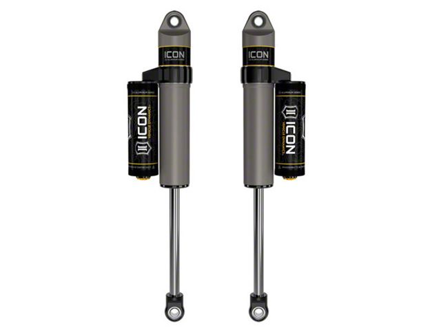 ICON Vehicle Specific (V.S.) 2.5 Aluminum Series shocks are designed and built to give your vehicle outstanding performance off-road and a smooth ride on the street. These shocks are configured specifically for each application in both length and damping tune. Like all ICON'S Shock Absorbers, V.S. 2.5 Aluminum Series shocks are 100% rebuildable and 100% revalveable. For piggyback and specific remote reservoir applications, ICON'S unique use of a 6061 billet aluminum manifold a few inches below the top cap of the shock creates an internal Bump Zone that when used creates an additional 20% of damping force. This additional force helps prevent harsh bottom outs and controls the suspension when compressing at high velocity. If you are looking for a more user defined tune, consider looking into the Compression Damping Control Valve (CDCV) shocks.