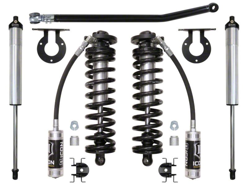 ICON's 2.5 VS Series Remote Reservoir Bolt-In Coilover Conversion Kit will add a new level of performance and adjustability to 2005-2016 F-250 and F-350 trucks. The advantage of utilizing a coilover conversion kit is that they have been designed to increase the overall damping ability of the vehicle while at the same time allowing for user-defined ride height adjustment. The 2.5" Remote Reservoir Coilover featured in these kits is based off of ICON's 2.5 VS Series shock line - meaning that features like Eibach coil springs, FK Rod End bearings, and vehicle-specific valving come standard. Quality machined components and a fully serviceable design make for a product that will stand the test of time, yet retain the ability to be rebuilt or re-valved as necessary.