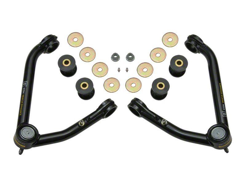 These upper control arms feature ICON's patented Delta Joint. The Delta Joint is a heavy duty high angle ball joint that combines the durability of a ball joint with the performance characteristics of a traditional uniball. While the industry standard uniball does a great job of allowing the control arms of a vehicle to articulate with little bind, they do have an inherent weakness that leaves more to be desired when used in a daily driven application - exposure to the elements. The Delta Joint features a zinc plated housing providing the first layer of corrosion resistance, while a tough grease seal keeps potentially harmful elements out of the inner workings of the joint. Metal on metal construction and a greasable design increase the longevity of the Delta Joint while at the same time allowing for noise-free operation. What makes the Delta Joint unique is that it brings the best of both worlds to ICON upper control arms with features that make it more robust than a uniball, and at the same time capable of greater angularity than a typical ball joint.Suspension components are key to making sure your car is riding smoothly on or off the road. With upgraded suspension components, you can unlock the full potential of your vehicles performance.Control arms connect your vehicle's suspension to the vehicles frame. Control arms allow your vehicle to turn and pivot. By having a quality set of control arms, you can keep your vehicle's suspension feeling smooth and operating properly.ICON Vehicle Dynamics is a premier performance suspension manufacturer that specializes in aftermarket suspension components for trucks, SUVs, and off-road suspension development. The company's business is customer-driven, technology-influenced, engineering-oriented, and focuses on world-class manufacturing processes and techniques. Led by head engineer and SCORE champion driver Dylan Evans, ICON Vehicle Dynamics has the unique qualities to design and build the highest quality suspension components and test them in both real-world applications as well as race conditions.