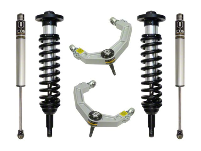 This system features upper control arms with ICON's patented Delta Joint. The Delta Joint is a heavy duty high angle ball joint that combines the durability of a ball joint with the performance characteristics of a traditional uniball. While the industry standard uniball does a great job of allowing the control arms of a vehicle to articulate with little bind, they do have an inherent weakness that leaves more to be desired when used in a daily driven application - exposure to the elements. The Delta Joint features a zinc plated housing providing the first layer of corrosion resistance, while a tough grease seal keeps potentially harmful elements out of the inner workings of the joint. Metal on metal construction and a greasable design increase the longevity of the Delta Joint while at the same time allowing for noise-free operation. What makes the Delta Joint unique is that it brings the best of both worlds to ICON upper control arms with features that make it more robust than a uniball, and at the same time capable of greater angularity than a typical ball joint.