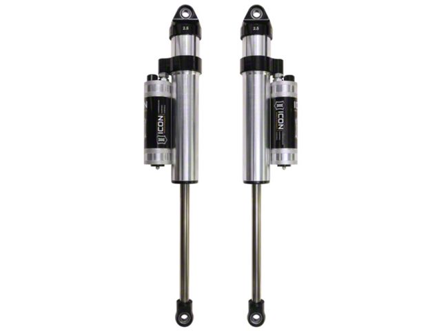 ICON Vehicle Specific (V.S.) 2.5 Series shocks are designed and built to give your vehicle outstanding performance off-road and a smooth ride on the street. These shocks are configured specifically for each application in both length and damping tune. Like all ICON'S Shock Absorbers, V.S. 2.5 Series shocks are 100% rebuildable and 100% revalveable. For piggyback and specific remote reservoir applications, ICON'S unique use of a 6061 billet aluminum manifold a few inches below the top cap of the shock creates an internal Bump Zone that when used creates an additional 20% of damping force. This additional force helps prevent harsh bottom outs and controls the suspension when compressing at high velocity. The ICON CDC Valve is an externally adjustable valve that restricts oil flow into the reservoir which creates 10 levels of compression damping force ranges. If you are looking for a more user defined tune, consider looking into the Omega Series bypass shocks.
