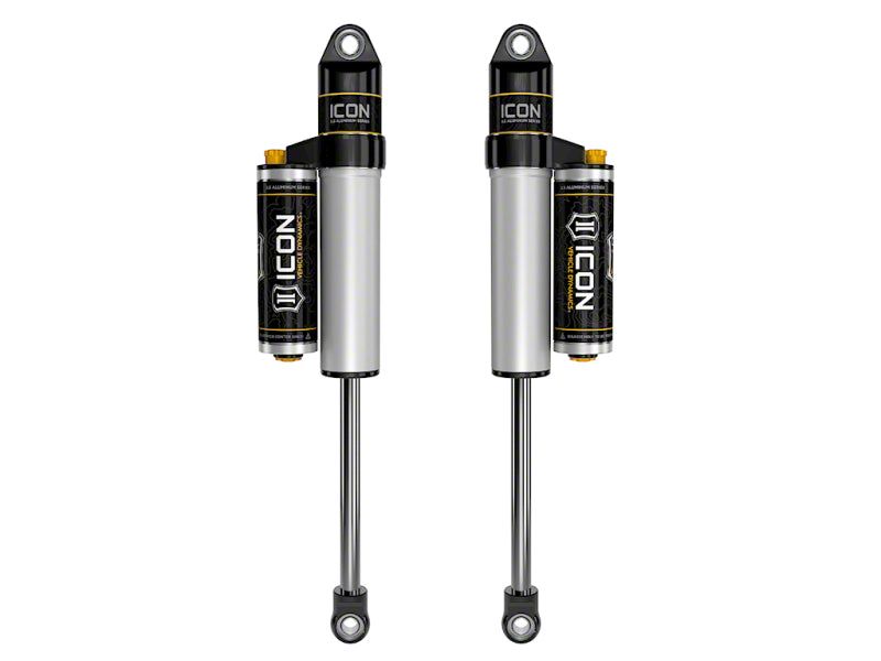ICON Vehicle Specific (V.S.) 2.5 Series shocks are designed and built to give your vehicle outstanding performance off-road and a smooth ride on the street. These shocks are configured specifically for each application in both length and damping tune. Like all ICON'S Shock Absorbers, V.S. 2.5 Series shocks are 100% rebuildable and 100% revalveable. For piggyback and specific remote reservoir applications, ICON'S unique use of a 6061 billet aluminum manifold a few inches below thetop cap of the shock creates an internal Bump Zone that when used creates an additional 20% of damping force. This additional force helps prevent harsh bottom outs and controls the suspension when compressing at high velocity. The ICON CDC Valve is an externally adjustable valve that restricts oil flow into the reservoir which creates 10 levels of compression damping force ranges. If you are looking for a more user defined tune, consider looking into the Omega Series bypass shocks.