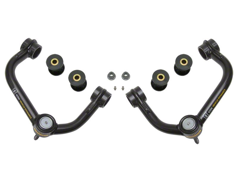 These upper control arms feature ICON's patent pending Delta Joint. The Delta Joint is a heavy duty high angle ball joint that combines the durability of a ball joint with the performance characteristics of a traditional uniball. While the industry standard uniball does a great job of allowing the control arms of a vehicle to articulate with little bind, they do have an inherent weakness that leaves more to be desired when used in a daily driven application - exposure to the elements. The Delta Joint features a zinc plated housing providing the first layer of corrosion resistance, while a tough grease seal keeps potentially harmful elements out of the inner workings of the joint. Metal on metal construction and a greasable design increase the longevity of the Delta Joint while at the same time allowing for noise-free operation. What makes the Delta Joint unique is that it brings the best of both worlds to ICON upper control arms with features that make it more robust than a uniball, and at the same time capable of greater angularity than a typical ball joint.