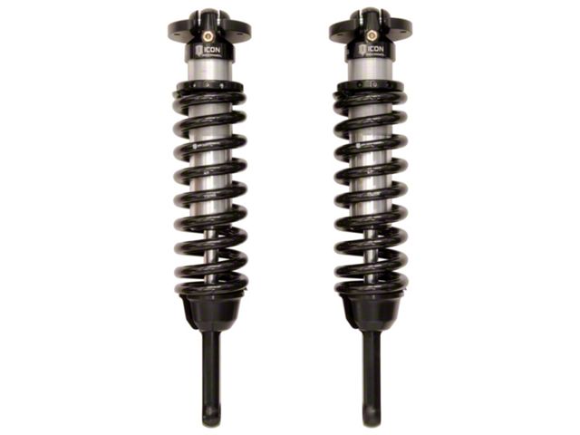 ICON Vehicle Dynamics V.S. 2.5 Series internal reservoir front coilover shocks are an incredible upgrade for the front end of the 2005-2023 Toyota Tacoma. These adjustable coilovers allow up to 0-3.5" of lift height adjustability on 2005-2015 models or 0-2.75" of lift height adjustability on 2016-2023 models, allowing the use of larger, more aggressive wheel and tire combinations. ICON's Vehicle-specific shock length and valving along with the larger 2.5" shock body and increased piston area over stock components yield the maximum travel possible along with superior ride quality and suspension performance both on- and off-road. Their extended travel length allows for more wheel travel but also requires the installation of aftermarket front upper control arms. When paired with ICON 2.0 or 2.5 Aluminum Series rear shock absorbers vehicle control will be balanced front to rear, resulting in the best overall driving experience for your Toyota Tacoma.
