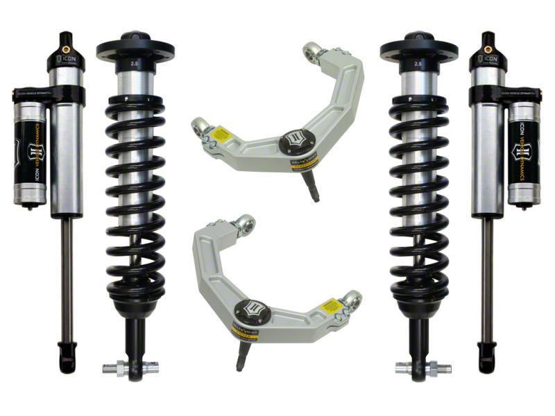 This system features upper control arms with ICON's patented Delta Joint. The Delta Joint is a heavy duty high angle ball joint that combines the durability of a ball joint with the performance characteristics of a traditional uniball. While the industry standard uniball does a great job of allowing the control arms of a vehicle to articulate with little bind, they do have an inherent weakness that leaves more to be desired when used in a daily driven application - exposure to the elements. The Delta Joint features a zinc plated housing providing the first layer of corrosion resistance, while a tough grease seal keeps potentially harmful elements out of the inner workings of the joint. Metal on metal construction and a greasable design increase the longevity of the Delta Joint while at the same time allowing for noise-free operation. What makes the Delta Joint unique is that it brings the best of both worlds to ICON upper control arms with features that make it more robust than a uniball, and at the same time capable of greater angularity than a typical ball joint.