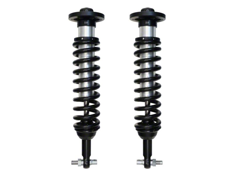 ICON Vehicle Dynamics V.S. Series 2.5” coilover shocks are an incredible upgrade for the front end of 2015-UP Ford F-150 4WD trucks. ICON’s Vehicle-specific valving provides a sport tuned feel on and off-road while 0-2.63” lift height adjustability allows the use of larger, more aggressive wheel and tire combinations. The larger 2.5” shock body and increased piston area over stock components provides improved damping ability and outstanding ride characteristics across varying types of terrain. When paired with ICON rear 2.0 Aluminum Series or 2.5 Series shocks vehicle control will be balanced front to rear, resulting in the best overall driving experience for your F-150 truck.