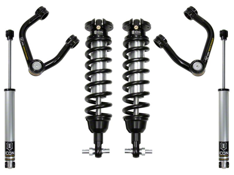 This system features tubular steel upper control arms with ICON's patented Delta Joint. The Delta Joint is a heavy-duty high angle ball joint that combines the durability of a ball joint with the performance characteristics of a traditional uniball. While the industry standard uniball does a great job of allowing the control arms of a vehicle to articulate with little bind, they do have an inherent weakness that leaves more to be desired when used in a daily driven application - exposure to the elements. The Delta Joint features a zinc plated housing providing the first layer of corrosion resistance, while a tough grease seal keeps potentially harmful elements out of the inner workings of the joint. Metal on metal construction and a greaseable design increase the longevity of the Delta Joint while at the same time allowing for noise-free operation. What makes the Delta Joint unique is that it brings the best of both worlds to ICON upper control arms with features that make it more robust than a uniball, and at the same time capable of greater angularity than a typical ball joint.