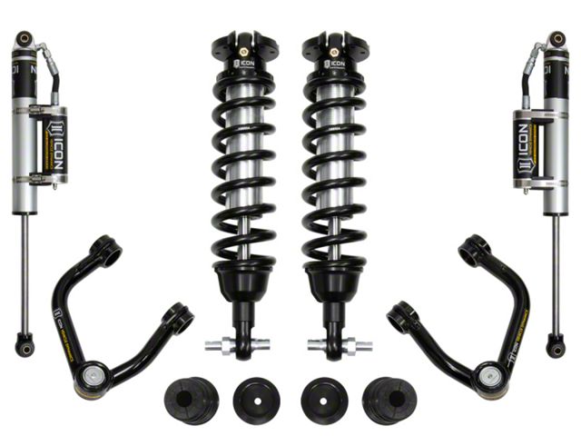 This system features tubular steel upper control arms with ICON's patented Delta Joint. The Delta Joint is a heavy duty high angle ball joint that combines the durability of a ball joint with the performance characteristics of a traditional uniball. While the industry standard uniball does a great job of allowing the control arms of a vehicle to articulate with little bind, they do have an inherent weakness that leaves more to be desired when used in a daily driven application - exposure to the elements. The Delta Joint features a zinc plated housing providing the first layer of corrosion resistance, while a tough grease seal keeps potentially harmful elements out of the inner workings of the joint. Metal on metal construction and a greasable design increase the longevity of the Delta Joint while at the same time allowing for noise-free operation. What makes the Delta Joint unique is that it brings the best of both worlds to ICON upper control arms with features that make it more robust than a uniball, and at the same time capable of greater angularity than a typical ball joint.