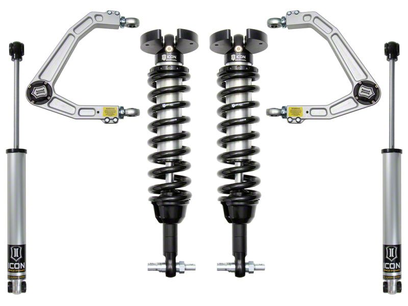 This system features billet aluminum upper control arms with ICON's patented Delta Joint. The Delta Joint is a heavy duty high angle ball joint that combines the durability of a ball joint with the performance characteristics of a traditional uniball. While the industry standard uniball does a great job of allowing the control arms of a vehicle to articulate with little bind, they do have an inherent weakness that leaves more to be desired when used in a daily driven application - exposure to the elements. The Delta Joint features a zinc plated housing providing the first layer of corrosion resistance, while a tough grease seal keeps potentially harmful elements out of the inner workings of the joint. Metal on metal construction and a greasable design increase the longevity of the Delta Joint while at the same time allowing for noise-free operation. What makes the Delta Joint unique is that it brings the best of both worlds to ICON upper control arms with features that make it more robust than a uniball, and at the same time capable of greater angularity than a typical ball joint.