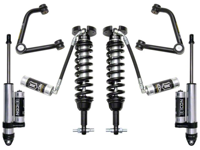 This system features tubular steel upper control arms with ICON's patented Delta Joint. The Delta Joint is a heavy duty high angle ball joint that combines the durability of a ball joint with the performance characteristics of a traditional uniball. While the industry standard uniball does a great job of allowing the control arms of a vehicle to articulate with little bind, they do have an inherent weakness that leaves more to be desired when used in a daily driven application - exposure to the elements. The Delta Joint features a zinc plated housing providing the first layer of corrosion resistance, while a tough grease seal keeps potentially harmful elements out of the inner workings of the joint. Metal on metal construction and a greasable design increase the longevity of the Delta Joint while at the same time allowing for noise-free operation. What makes the Delta Joint unique is that it brings the best of both worlds to ICON upper control arms with features that make it more robust than a uniball, and at the same time capable of greater angularity than a typical ball joint.