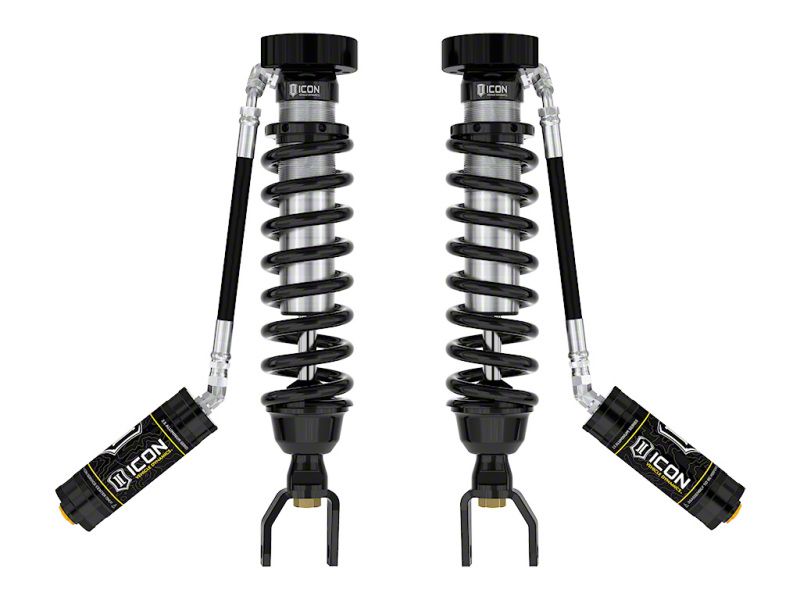 ICON Vehicle Dynamics V.S. 2.5 Series coilover shocks are an incredible upgrade for the front end of 2019-2023 Ram 1500 trucks. ICON's Vehicle-specific valving provides a sport tuned feel on and off-road while 2-3" of lift height adjustability allows the use of larger, more aggressive wheel and tire combinations. The larger 2.5" shock body and increased piston area over stock components and application specific length to maximize wheel travel provide improved damping ability and outstanding ride characteristics across varying types of terrain. These remote reservoir coilovers will maintain lower operating temperatures and offer more consistent operation during extended or aggressive off-road use compared to internal reservoir versions. When paired with ICON 2.0 Aluminum Series or 2.5 Aluminum Series rear shocks vehicle control will be balanced front to rear, resulting in the best overall driving experience for your Ram 1500 truck.