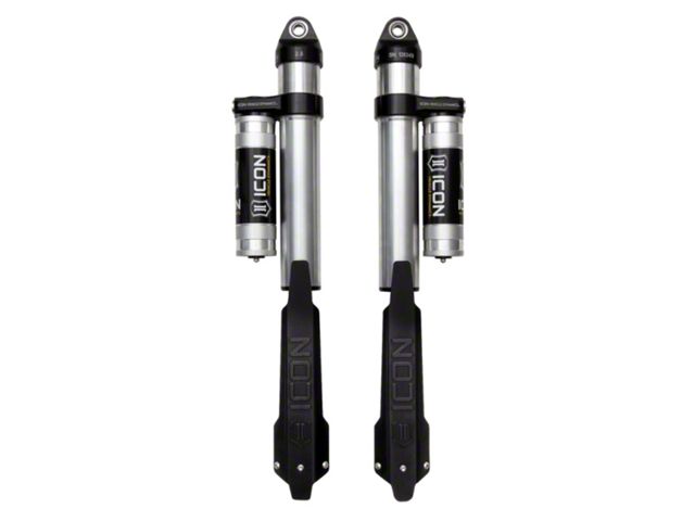 ICON Vehicle Specific (V.S.) 2.5 Aluminum Series shocks are designed and built to give your vehicle outstanding performance off-road and a smooth ride on the street. These shocks are configured specifically for each application in both length and damping tune. Like all ICON'S Shock Absorbers, V.S. 2.5 Aluminum Series shocks are 100% rebuildable and 100% revalveable. For piggyback and specific remote reservoir applications, ICON'S unique use of a 6061 billet aluminum manifold a few inches below the top cap of the shock creates an internal Bump Zone that when used creates an additional 20% of damping force. This additional force helps prevent harsh bottom outs and controls the suspension when compressing at high velocity. If you are looking for a more user defined tune, consider looking into the Compression Damping Control Valve (CDCV). Shin guards are also included with this application to help protect the shock shafts from debris strikes during off-road use.