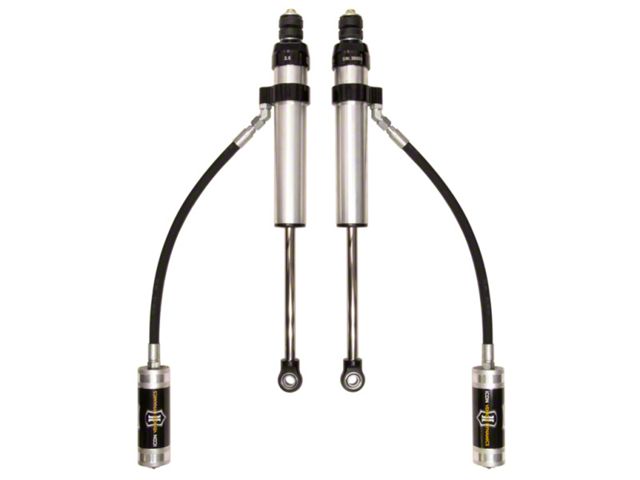 ICON Vehicle Specific (V.S.) 2.5 Series shocks are designed and built to give your vehicle outstanding performance off-road and a smooth ride on the street. These shocks are configured specifically for each application in both length and damping tune. Like all ICON'S Shock Absorbers, V.S. 2.5 Series shocks are 100% rebuildable and 100% revalveable. For piggyback and specific remote reservoir applications, ICON'S unique use of a 6061 billet aluminum manifold a few inches below the top cap of the shock creates an internal Bump Zone that when used creates an additional 20% of damping force. This additional force helps prevent harsh bottom outs and controls the suspension when compressing at high velocity. If you are looking for a more user defined tune, consider looking into the Compression Damping Control Valve (CDCV) or the Omega Series bypass shocks.