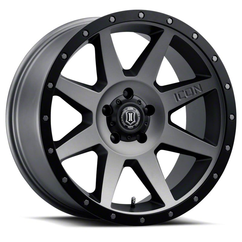 ICON Alloys is pleased to announce the arrival of new 20" sizes of our best-selling 'Rebound' wheel designed for today's most popular 5-lug and 6-lug applications. Combining sharp lines, a concave spoke design, and color-matched rock ring bolts the new 20x9 'Rebound' has a style that is anything but ordinary. These new wheels not only enhance the appearance of the most common vehicles, but also improve function with "ICON-optimized" backspacing that provides better wheel fitment, maximized caliper clearance, reduced scrub radius, and unhindered suspension travel.