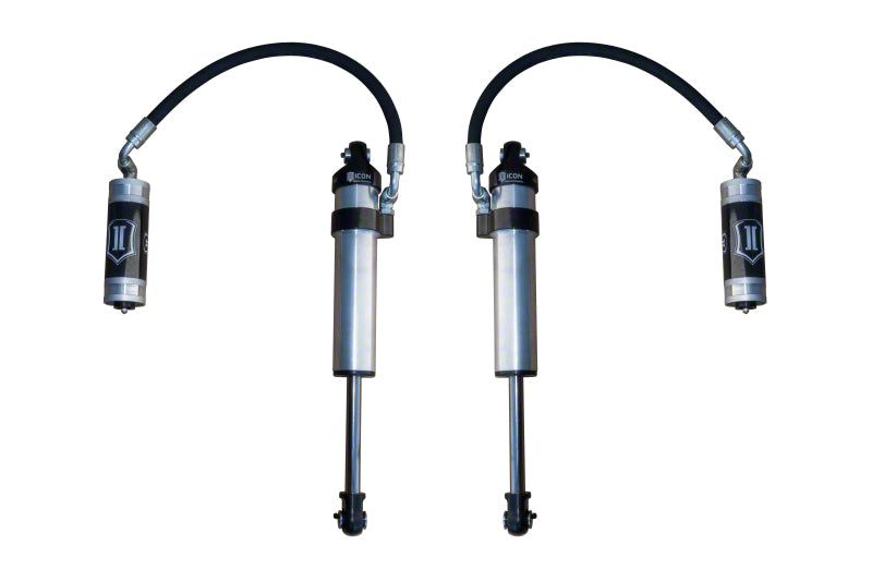 ICON Vehicle Specific (V.S.) 2.5 Series shocks are designed and built to give your vehicle outstanding performance off-road and a smooth ride on the street. These shocks are configured specifically for each application in both length and damping tune. Like all ICON'S Shock Absorbers, V.S. 2.5 Series shocks are 100% rebuildable and 100% revalveable. For piggyback and specific remote reservoir applications, ICON'S unique use of a 6061 billet aluminum manifold a few inches below the top cap of the shock creates an internal Bump Zone that when used creates an additional 20% of damping force. This additional force helps prevent harsh bottom outs and controls the suspension when compressing at high velocity. If you are looking for a more user defined tune, consider looking into the Compression Damping Control Valve (CDCV) or the Omega Series bypass shocks.