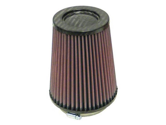 The RP-4980 Universal Air Filter is constructed from an oiled cotton filter media. It comes with a K&N embossed carbon fiber top for strength and durability. The carbon fiber element adds to the light-weight design and gives this filter a smooth glass like finish. The RP-4980 is a clamp-on filter that has an inside flange diameter of 4 inches and a flange length of 5/8 inches. The base is 5 3/8 inches and the filter height is 6 1/2 inches.