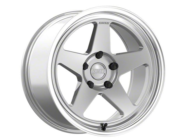 A 17X9.5 Kansei wheel. Overall wheel info: Diameter: 17, Width: 9.5, Bolt Pattern: 5X114.3, wheel_offset: 12, Finish: Hyper Silver with Bright Machined Lip, Part No.: K12H-179512+12 -