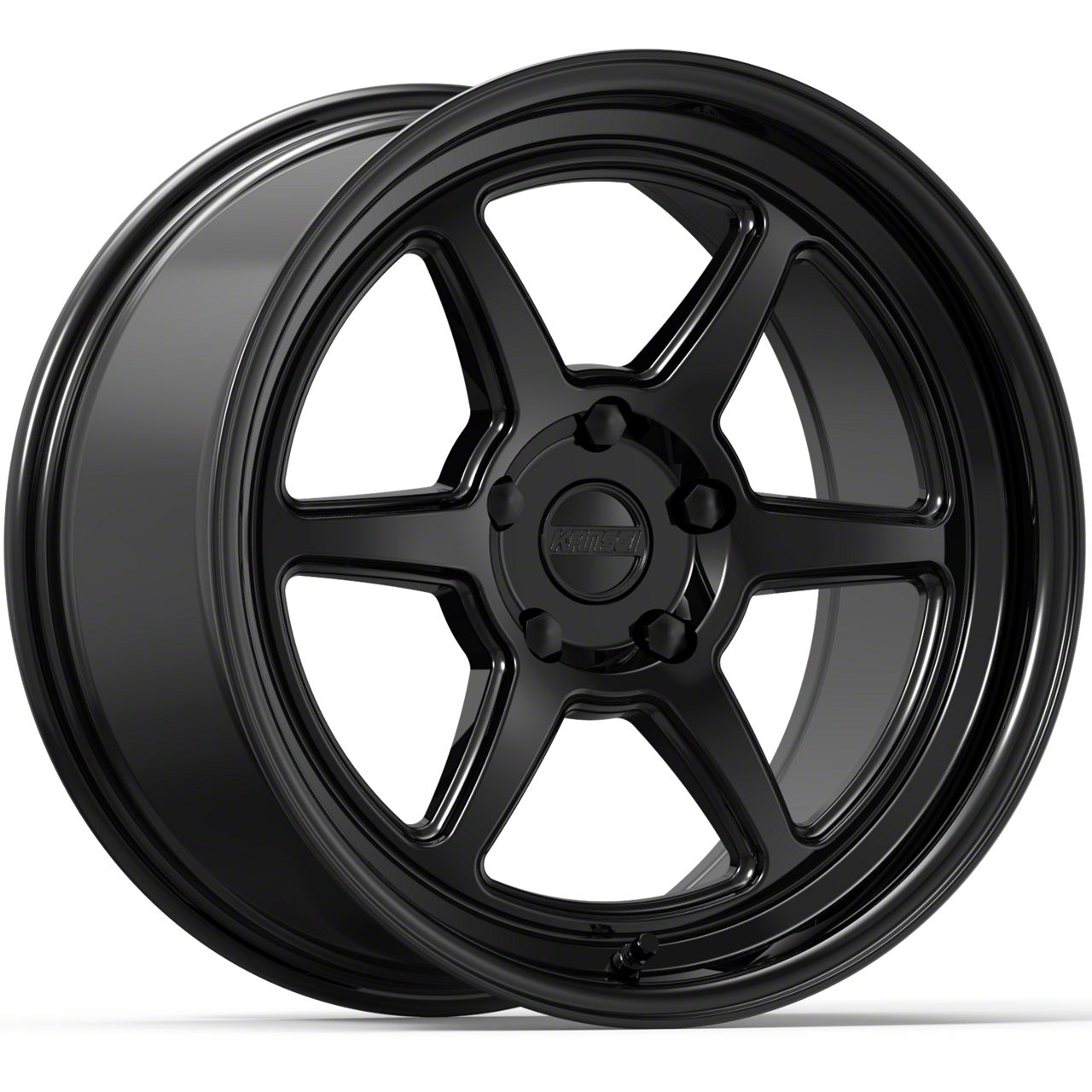 A 18X9.5 Kansei wheel. Overall wheel info: Diameter: 18, Width: 9.5, Bolt Pattern: 5X120, wheel_offset: 22, Finish: Gloss Black, Part No.: K14B-189518+22 -